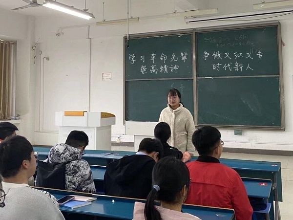 12月14日,动物医学182团支部组织开展“学习革命先辈崇高精神,争做又红又专时代新人”主题班会,在班会上,团支书方毅通过讲述董存瑞烈士炸碉堡,刘胡兰烈士坚贞不屈,黄继光烈士堵枪口等革命先烈的英勇事迹,带领团员青年学习了革命先烈们在为党为国、为民族谋求解放的历史进程中不怕牺牲,无私奉献,大公无私的榜样精神。团员青年们在听完革命先烈的感人事迹后,纷纷有感而发。“我们要学习革命先烈顽强拼搏的奋斗精神,要继承和发扬敢于斗争、敢于胜利的革命精神,始终保持昂扬向上的精神状态,奋发进取、开拓创新,扎扎实实地做好各项工作。”团员岳梦龙说。