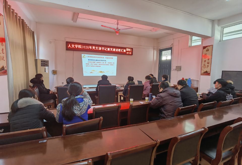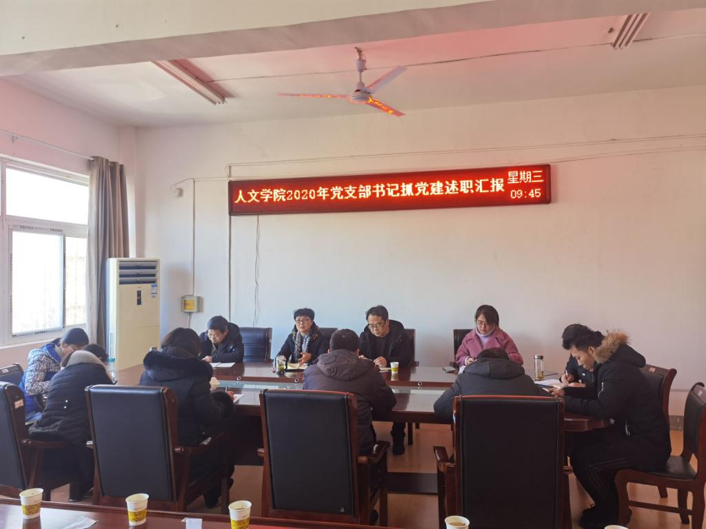为深入学习贯彻习近平新时代中国特色社会主义思想,落实党的十九大和十九届四中、五中全会精神,坚决落实党风廉政建设各项工作要求,坚持党要管党、全面从严治党。根据《中共88038威尼斯委员会关于开展2020年度基层党组织书记抓党建述职评议考核工作的通知》文件要求,人文学院于1月13日上午在学院会议室召开2020年度基层党支部书记抓党建述职评议会。学院党总支委员、党支部委员、工会主席、民主党派和无党派教师代表以及学生党员代表参加。会议由党总支书记杜士凤主持。