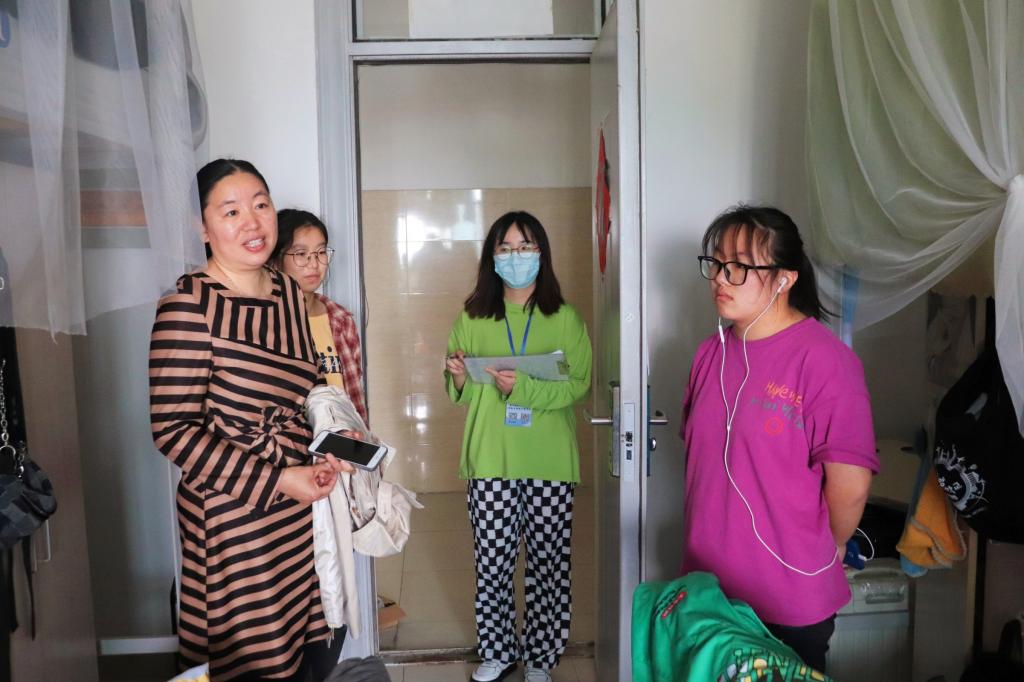 此次检查的重点是宿舍是否有违规使用电器情况以及阳台、书桌、洗漱台等卫生区的卫生和疫情防控期间宿舍消杀情况。从整体来看,大多数宿舍通风良好,空气清新,干净整洁,床铺上物品及其他生活用品摆放整齐,能给人一种温馨怡人的感觉,并且没有大功率用电器,宿舍安全管理制度也很完善。但也有个别宿舍表现不是太好,地面相对脏乱,桌面不整洁,极少数宿舍还存在插线板上床的情况。针对上述问题,老师们明确指出并给予了批评,希望同学们能够意识到宿舍卫生、安全用电以及卫生消杀的重要性,自觉改善宿舍的生活环境。并着重强调,一要做好值日安排,定期打扫宿舍卫生,做好宿舍消杀工作,保持宿舍整洁;二要加强交流,互相关心,互相帮助,和睦相处,增进友谊,共创文明宿舍、学习宿舍。同时,韦乃学亲切地叮嘱同学们春季气候冷热交替很容易着凉,要注意日常饮食,要养成良好的作息习惯。